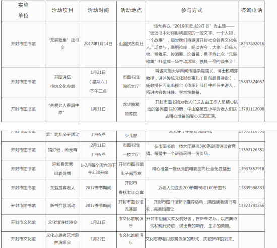 開封市2017年“暖暖新年·春滿中原”系列活動安排表格